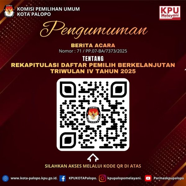 Seluruh data dan masukan tersebut dirumuskan dan ditetapkan sebagai bagian dari Rekapitulasi Daftar Pemilih Berkelanjutan Tingkat Kota Palopo Triwulan IV Tahun 2025, yang kemudian dituangkan dalam Berita Acara Nomor: 71/PP.07-BA/7373/2025.