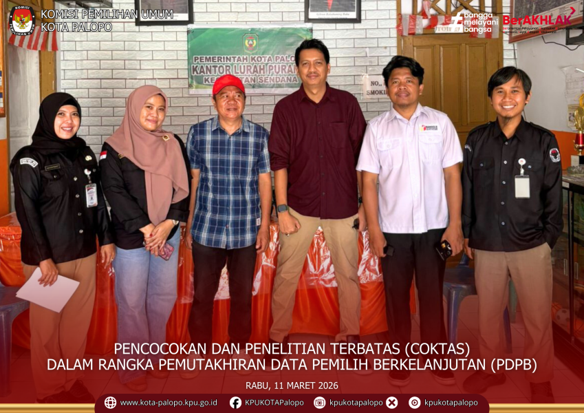 PALOPO -- Komisi Pemilihan Umum (KPU) Kota Palopo melakukan kunjungan ke tiga kelurahan yakni Purangi, Sendana dan Mawa, Rabu (11/03/2026). Kunjungan tersebut dalam rangka pelaksanaan Pemutakhiran Data Pemilih Berkelanjutan (PDPB). KPU melalukan pencocokan dan penelitian data warga Palopo yang dinyatakan meninggal dunia pada tiga kelurahan itu.