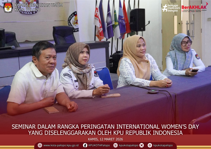 Komisi Pemilihan Umum Kota Palopo – Jajaran struktural Sekretariat KPU Kota Palopo mengikuti kegiatan seminar dalam rangka peringatan International Women’s Day yang diselenggarakan oleh KPU Republik Indonesia melalui Zoom Meeting pada Kamis 12 Maret 2026 dengan mengusung tema “Penguatan Peran Perempuan dalam Proses Elektoral sebagai Pilar Demokrasi Substantif”.