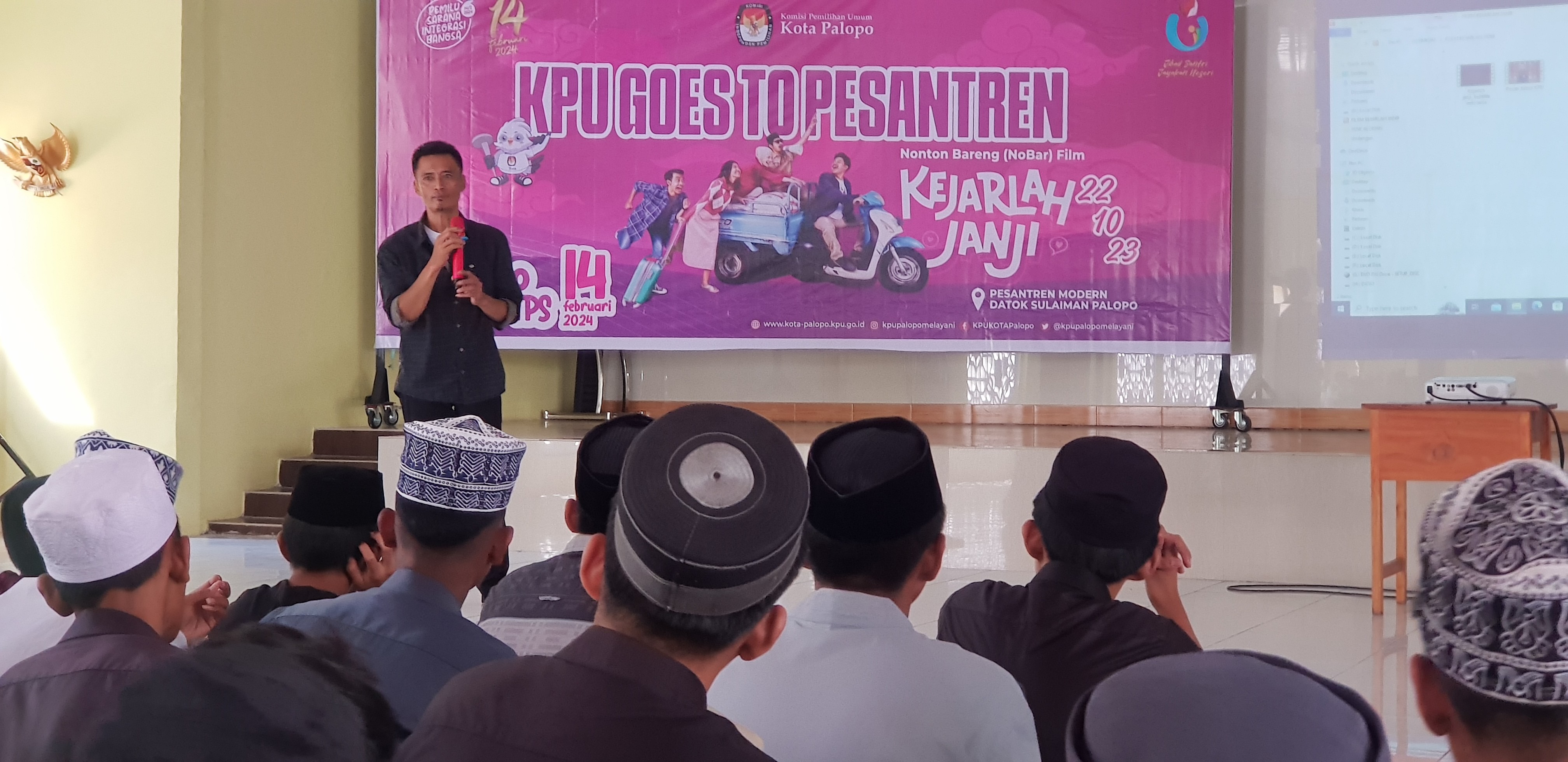 kota-palopo.kpu.go.id - Komisi Pemilihan Umum (KPU) Kota Palopo, Sulawesi Selatan menggelar nonton bareng (nobar) film “Kejarlah Janji”, di Pesantren Modern Datuk Sulaiman, Minggu 22 Oktober 2023.