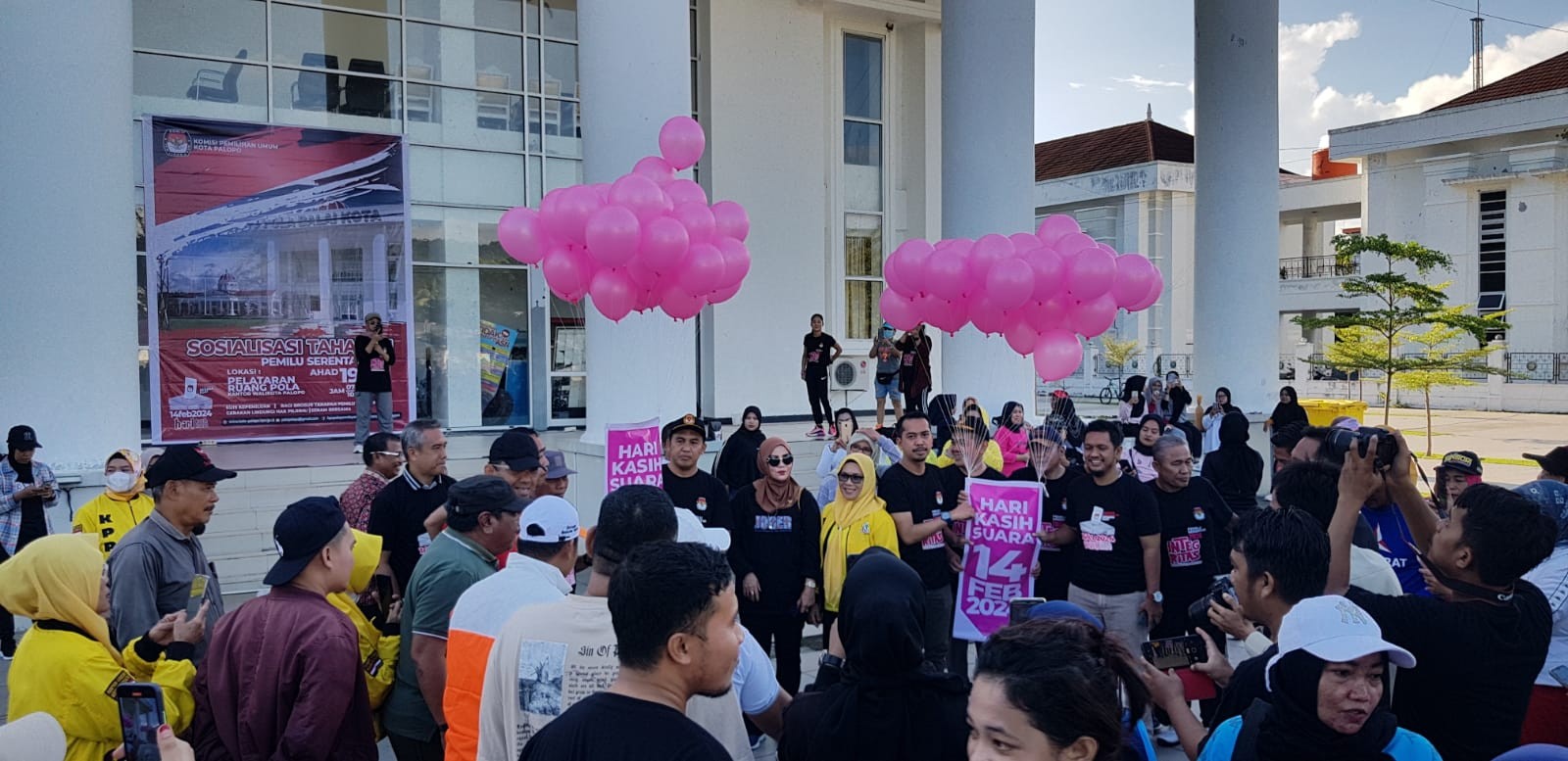 PALOPO -- Pelaksanaan peluncuran tahapan Pemilu tingkat Kota Palopo yang digelar Komisi Pemilihan Umum (KPU) Kota di Pelataran Ruang Pola Kantor Walikota Palopo, Minggu (19/06/2022) berlangsung meriah. Ratusan masyarakat tumpah ruah memadati lokasi acara yang berada satu kawasan dengan Lapangan Pancasila tersebut. Kegiatan yang dimulai pukul 07:00 Wita, diawali senam bersama dan dilanjutkan dengan sejumlah acara lainnya seperti cek data pemilih, quiz dan pembagian doorprize. Walikota Palopo yang diwakili Kepala Badan Kesbangpol, Hasanuddin menyampaikan dukungan pemerintah Kota Palopo terhadap kesuksesan penyelenggaraan Pemilu 2024. "Sebagai pemerintah kami berkewajiban mendukung sepenuhnya KPU Kota Palopo dalam menjalankan tugasnya menyelenggarakan pemilu agar berjalan sukses", ujar Hasanuddin saat membacakan sambutan tertulis Walikota. Dalam sambutan terpisah Ketua KPU Kota Palopo, Abbas Djohan menyampaikan terima kasih kepada pemerintah dan masyarakat Kota Palopo atas dukungannya kepada KPU dalam menjalankan tahapan pemilu. "Terkhusus Walikota dan masyarakat yang hadir memeriahkan peluncuran tahapan pemilu hari ini kami menyampaikan banyak terima kasih atas dukungantersebut", ucap Abbas Djohan. Sementara itu penanggungjawab kegiatan yang juga Komisioner KPU Kota Palopo Divisi Sosialisasi Pendidikan Pemilih dan Partisipasi Masyarakat (Sosdiklih Parmas), Surahman menegaskan jika launching yang dilaksanakan hari ini merupakan rangkaian peluncuran tahapan pemilu yang dilaksanakan secara nasional oleh KPU RI pada 14 Juni lalu. "Agar gaung tahapan pemilu tersosilisasi dengan baik hingga ke masyarakat secara luas maka peluncuran yang dilakukan di ruang terbuka dengan menghadirkan masyarakat secara langsung", terang Surahman. Surahman mengaku sangat puas dengan animo masyarakat yang datang memeriahkan acara ini. "Luar biasa. Masyarakat yang hadir sangat antusias untuk mengetahui proses tahapan pemilu yang tahapannya telah mulai dilaksanakan", kuncinya. Peluncuran tahapan pemilu yang dilaksanakan oleh KPU Kota Palopo ini selain dihadiri unsur Forkopimda, Pimpinan dan pengurus Parpol juga dihadiri sejumlah pimpinan instansi vertikal dan sejumlah pejabat teras Pemkot Palopo.(isw)